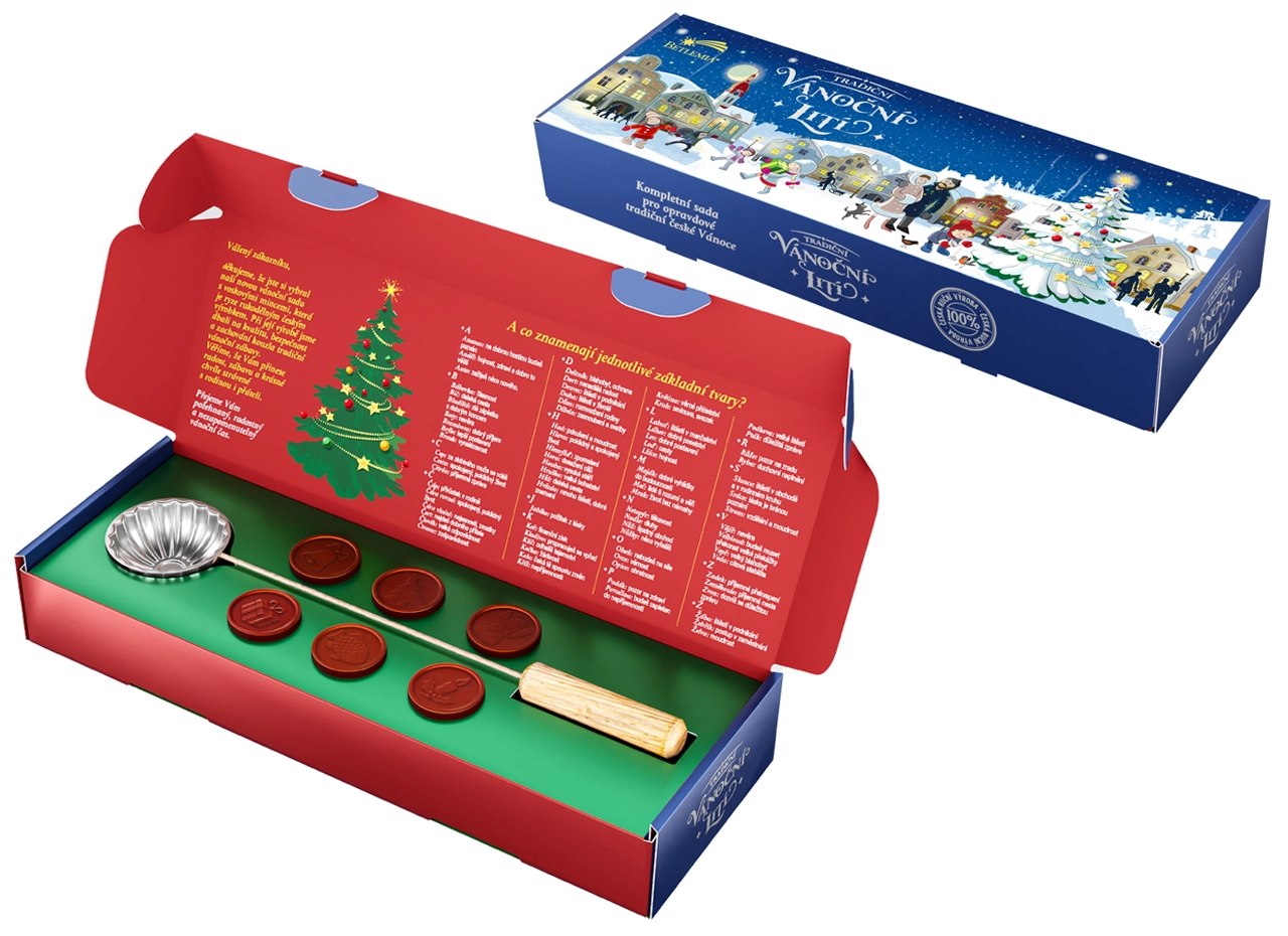 Entdecken Sie den Zauber der Festtage mit dem Betlemia-Set für traditionelles Wachsgießen. Ein einfaches Ritual, das Kinder und Erwachsene begeistert, bringt Geheimnis und Freude in den Heiligabend. Das Set ist ein hochwertiges tschechisches Erzeugnis und respektiert tschechische Traditionen.