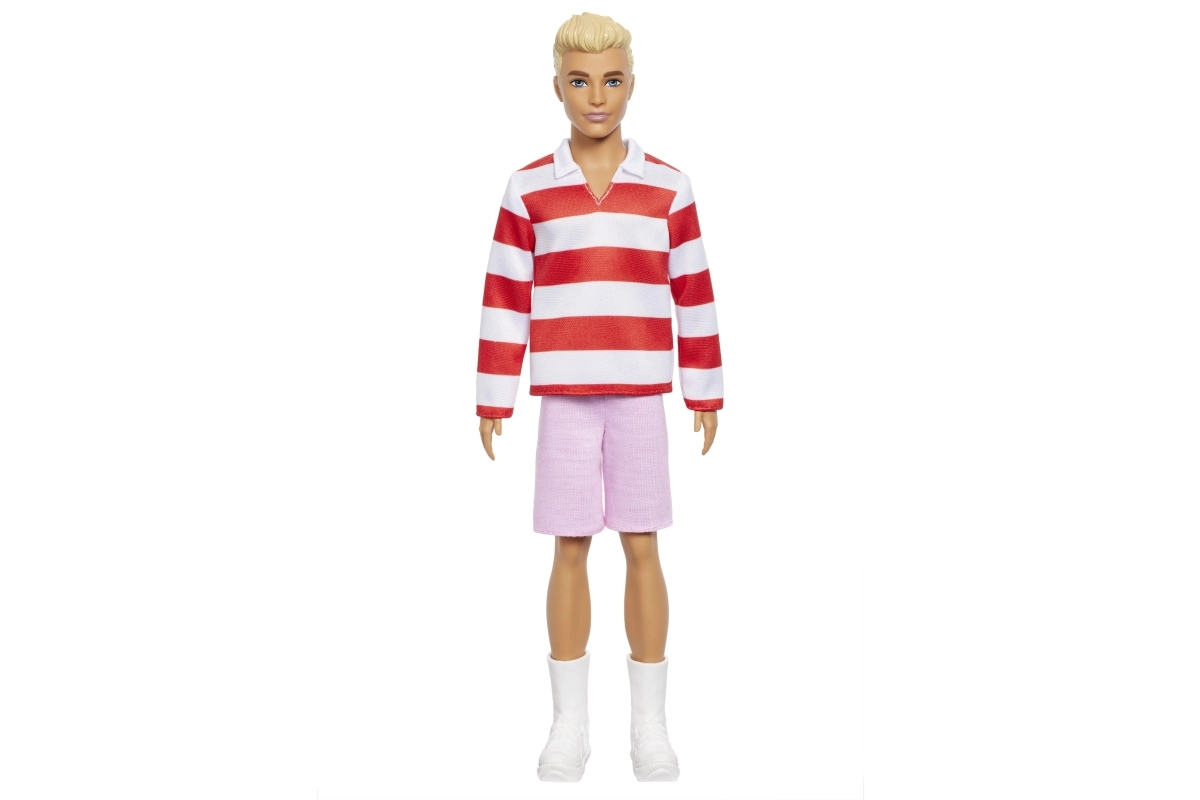 Entdecke die Modewelt mit dem Barbie Ken Model, der dazu inspiriert, Persönlichkeit durch Stil auszudrücken. Dank der sorgfältigen Details, dem gestreiften Top und den weißen Schuhen ist er bereit, auf jeder Bühne zu glänzen – vom Stadtbummel bis zur Modenschau.