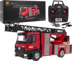 Der große RC-Feuerwehrwagen im Maßstab 1:14 bringt realistische Action für Kinder ab 8 Jahren. Steuern Sie die Fahrt in alle Richtungen, drehen Sie die Plattform mit ausfahrbarem Arm, heben und senken Sie den Ausleger und genießen Sie die funktionierende Wasserkanone mit Wassertank. Mit Licht- und Soundeffekten, die sich über die Fernsteuerung ausschalten lassen, und einer zuverlässigen 2,4-GHz-Steuerung.