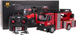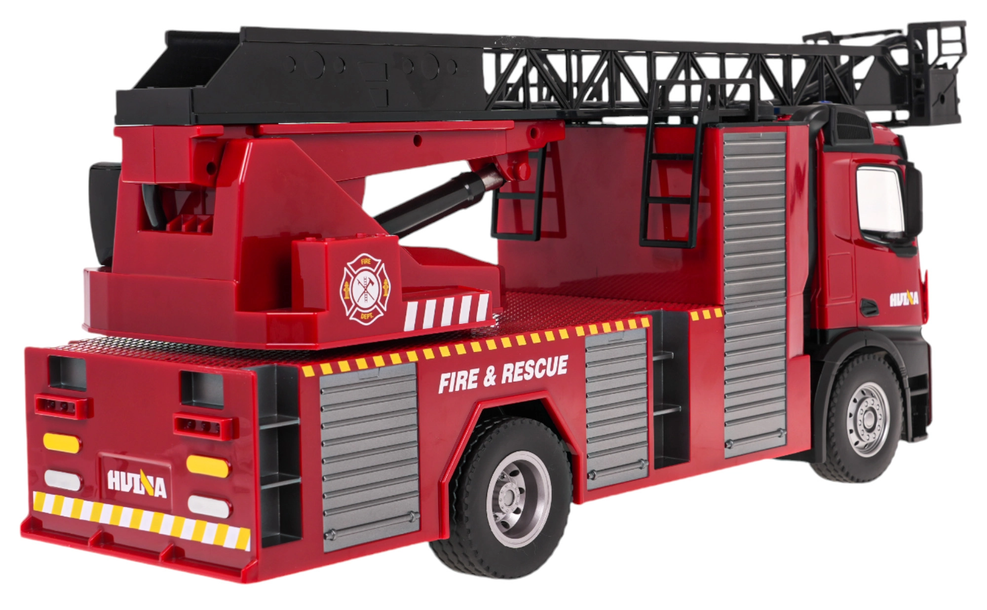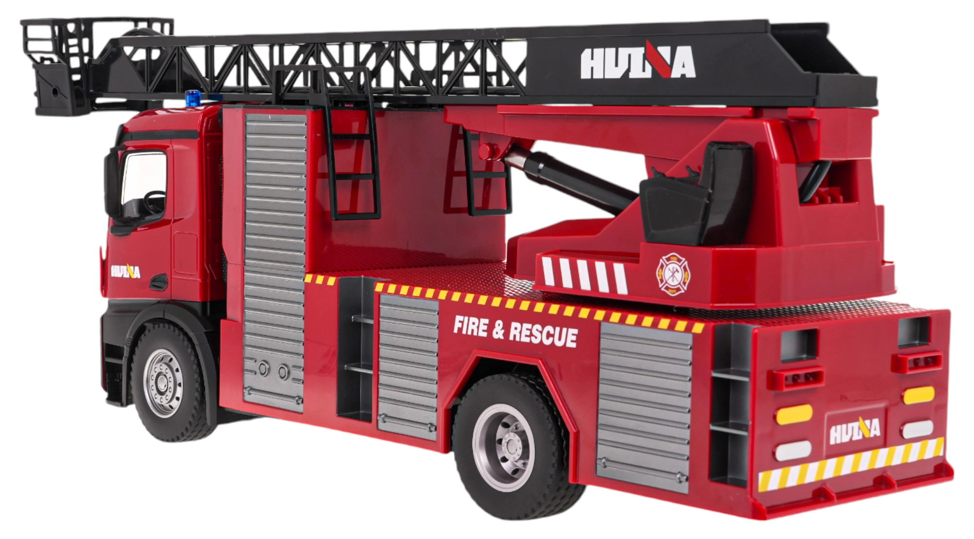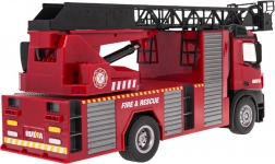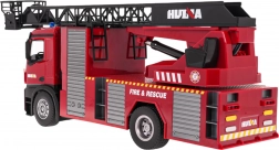 Für echten Spielspaß sorgt die funktionierende Wasserkanone: Befestigen Sie einfach den Schlauch am Ende des Auslegers und füllen Sie den oberen Tank mit Wasser. Realistische Licht- und Soundeffekte verstärken die Einsatzatmosphäre und können jederzeit per Fernsteuerung ausgeschaltet werden. Das Fahrzeug ist ideal für kleine Feuerwehr- und Rettungsfans, die eine Kombination aus Funktionalität und robuster Konstruktion suchen.