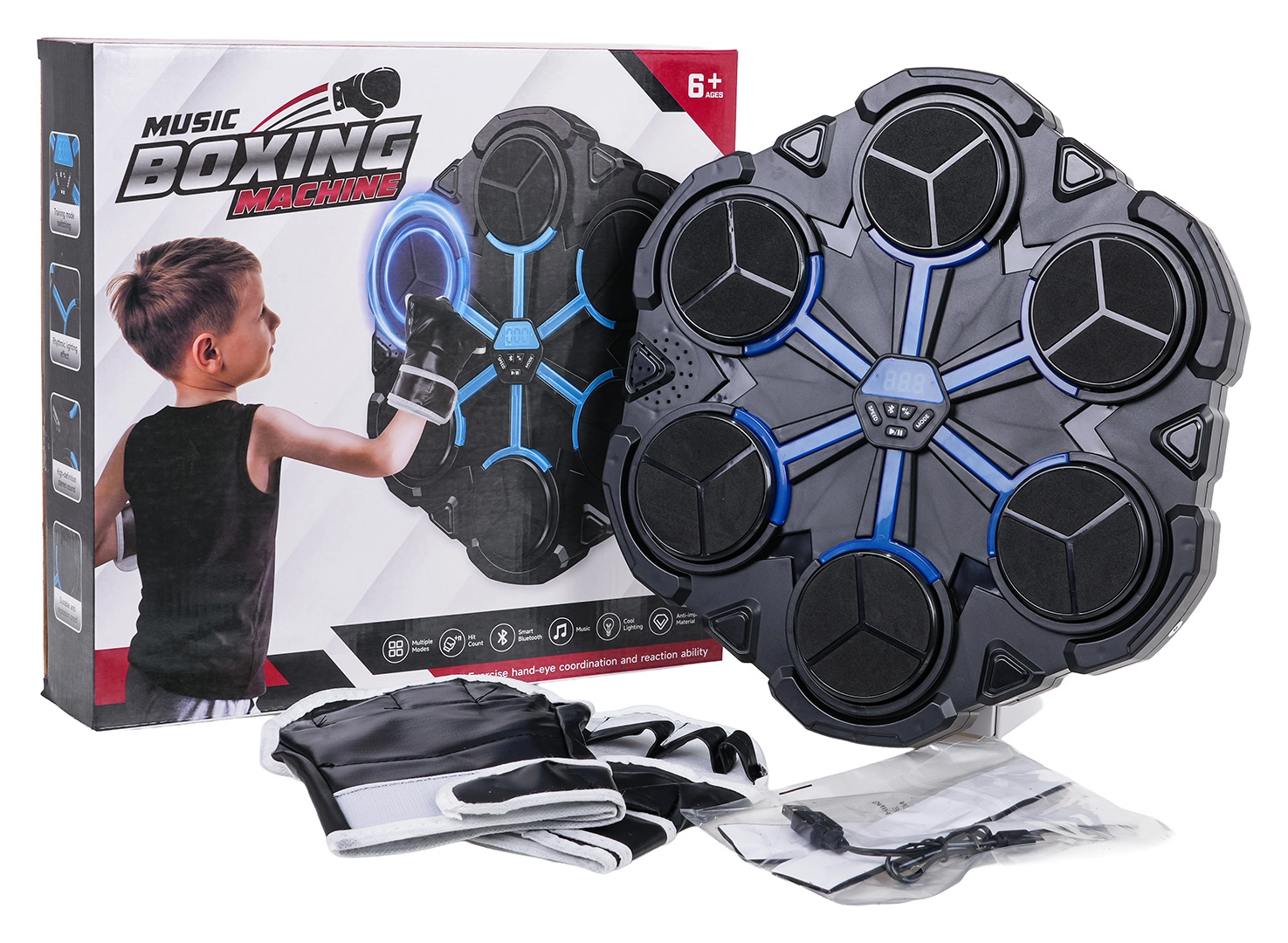 Verwandeln Sie Training in Spaß. Die Box-Tafel für Kinder fördert schnelle Reaktionen, Koordination und Fitness. Sie lässt sich ohne Bohren einfach auf verschiedenen Oberflächen befestigen, Handschuhe anziehen und schon können Punkte gesammelt werden. Die Bluetooth-Verbindung ermöglicht Boxen im Takt der Lieblingsmusik, während das zentrale LED-Display übersichtlich Punktestand und Einstellungen anzeigt.