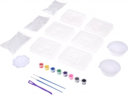 Zwei transparente Formen lassen sich leicht schließen und halten die Mischung ohne Auslaufen. Gips ins Wasser geben, verrühren und langsam eingießen – nach dem Aushärten erhalten Sie einen sauberen Guss, der bereit zum Bemalen ist.