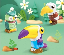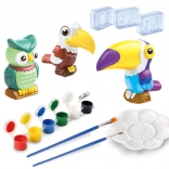 Enthalten sind leuchtende Farben, 2 Pinsel und eine Blumen-Palette zum Mischen von Farbtönen. Kinder können Farben kombinieren und originelle Muster auf ihren Dschungelvögeln gestalten.