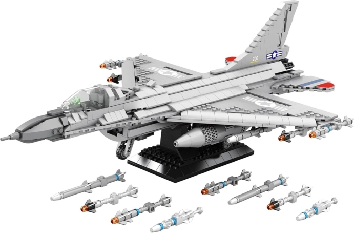 Dieses realistische REOBRIX-Bauset bringt die legendäre F‑16 in beeindruckenden Proportionen mit präzise ausgearbeiteten Details – von den aerodynamischen Flügeln bis zur charakteristischen Heckdüse. Dank der robusten Konstruktion aus widerstandsfähigem ABS-Kunststoff ist das Modell stabil beim Ausstellen wie auch beim Handling.