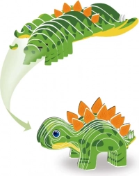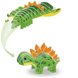 Die kreative 3D-Pappbastelarbeit verwandelt flache Teile in einen farbenfrohen Stegosaurus mit leuchtend orangefarbenen Rückenplatten. Die Teile müssen nur herausgedrückt und nach der einfachen Anleitung auf der Verpackung zusammengesetzt werden – ohne Schere und Kleber.