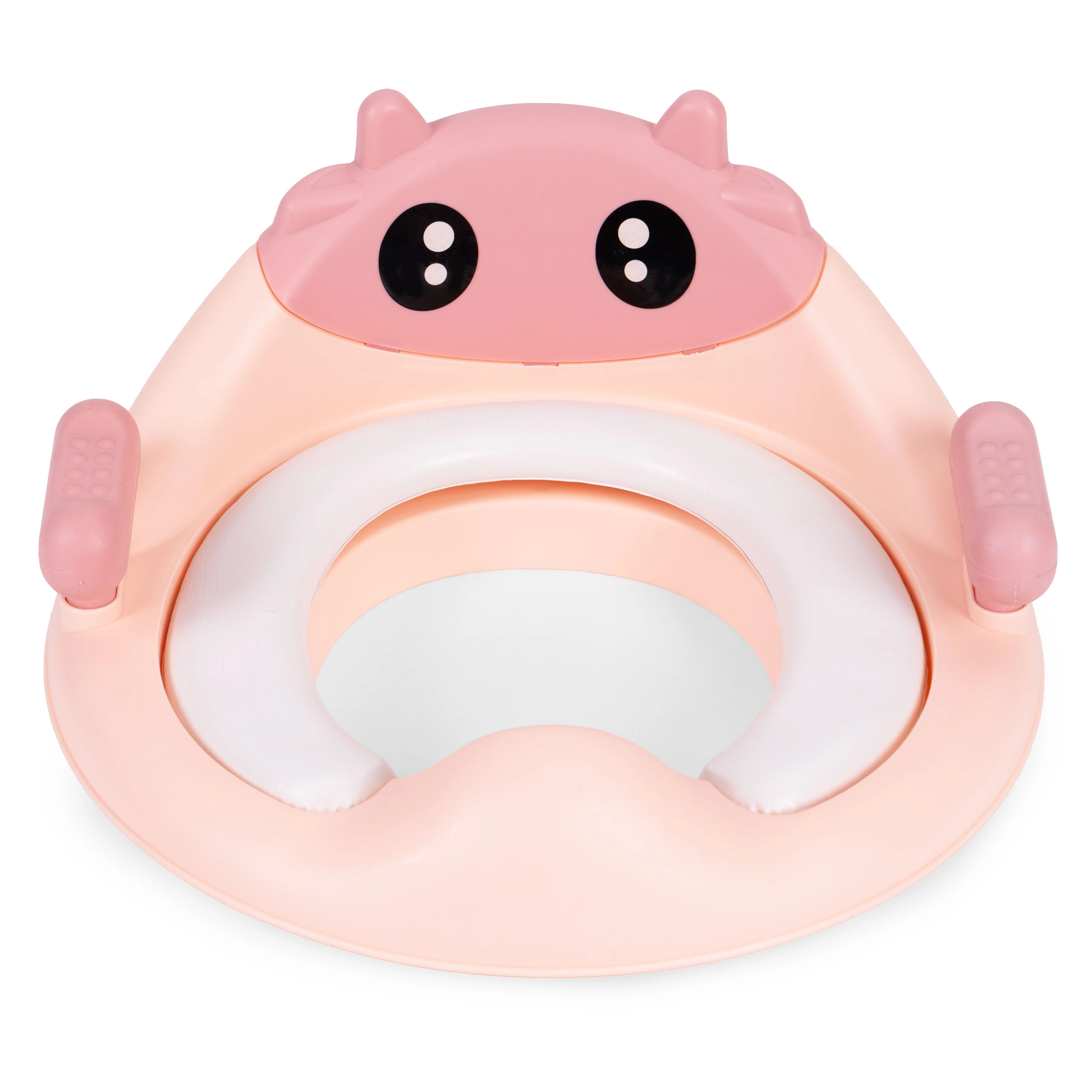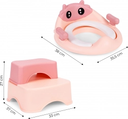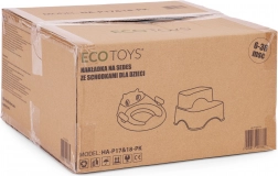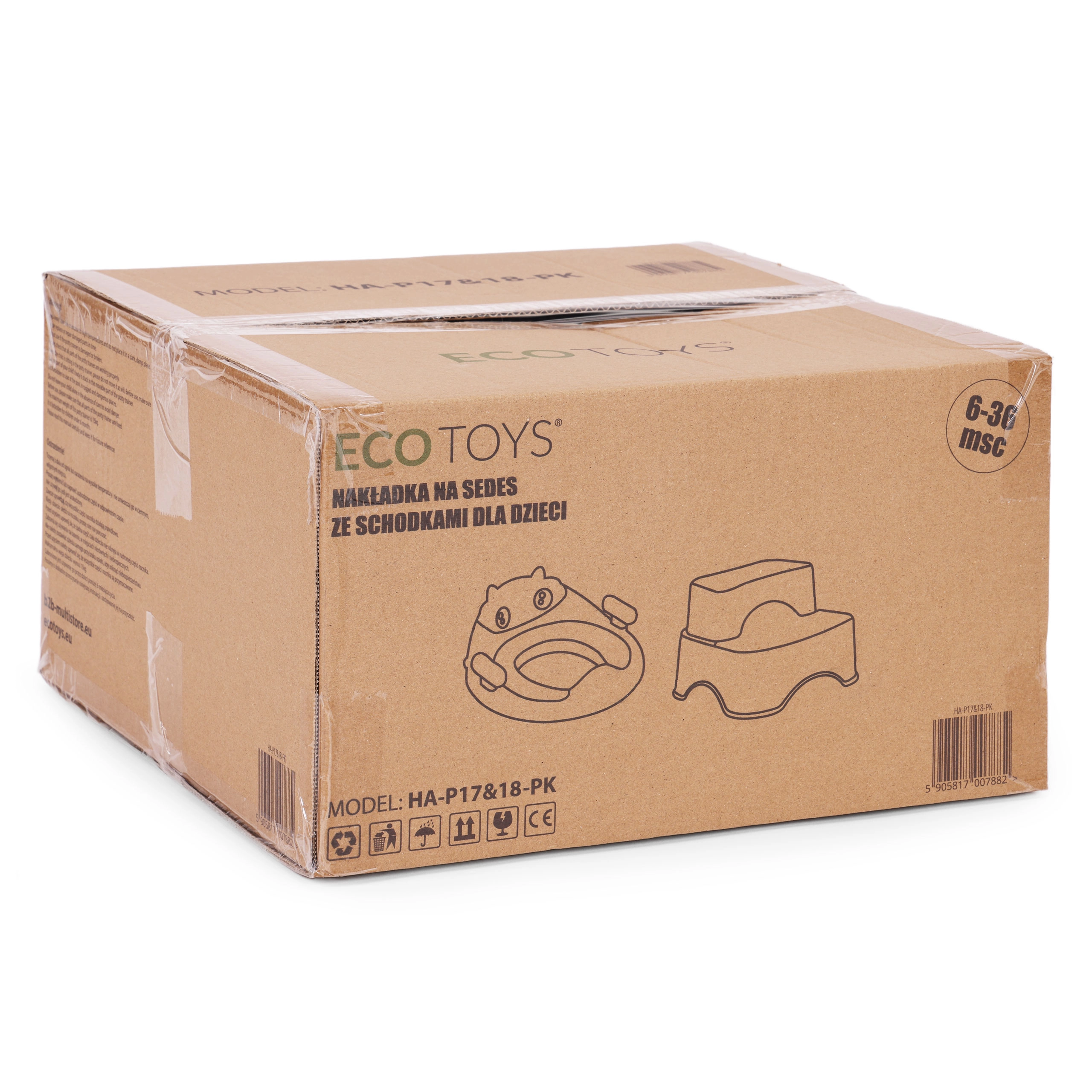 Geben Sie Ihrem Kind Sicherheit und Komfort beim Übergang von der Windel zur Toilette. Der rosa WC-Sitz von ECOTOYS mit weichem „Kissen“ sitzt dank ergonomischer Form und seitlichen Griffen sicher auf der Standard-Toilette, verkleinert die Öffnung und bietet stabilen Halt. Die zweistufigen Stufen mit rutschfester Oberfläche helfen Kindern, leicht und sicher hinaufzusteigen.