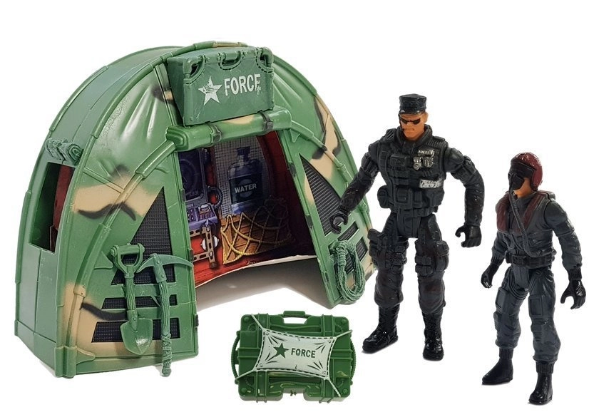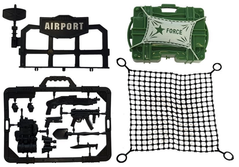 Zelt/Kommandocenter, Kisten, Radar, Waffen an Schienen und ein großes Lastnetz. Ideal zum Planen von Missionen und zum Ausbau des Spiels.