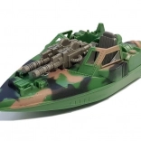 Robustes Kunststoffboot in Tarnoptik mit zwei Frontkanonen und detailliertem Cockpit erweitert die Action um Wasseroperationen.