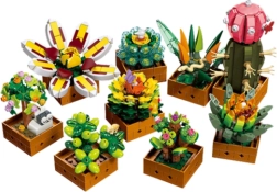 Dieses Design-Bauset ermöglicht Ihnen, eine farbenfrohe Pflanzenkollektion zu bauen – von exotischen Kakteen bis hin zu effektvollen Blüten mit ausladenden Blütenblättern. Dank präzise entworfener Teile wirken die Modelle realistisch und werden in Blumentöpfen platziert zu einer eleganten Innendekoration.