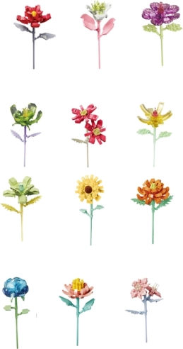 Jedes Modell bietet einen angemessenen Schwierigkeitsgrad – je nach Variante enthält es 71 bis 106 Teile. Nach dem Zusammenbau erreichen die Blüten eine Höhe von etwa 23–27 cm, sind stabil und leicht und eignen sich daher perfekt als Innendekoration, für den Schreibtisch oder das Regal.