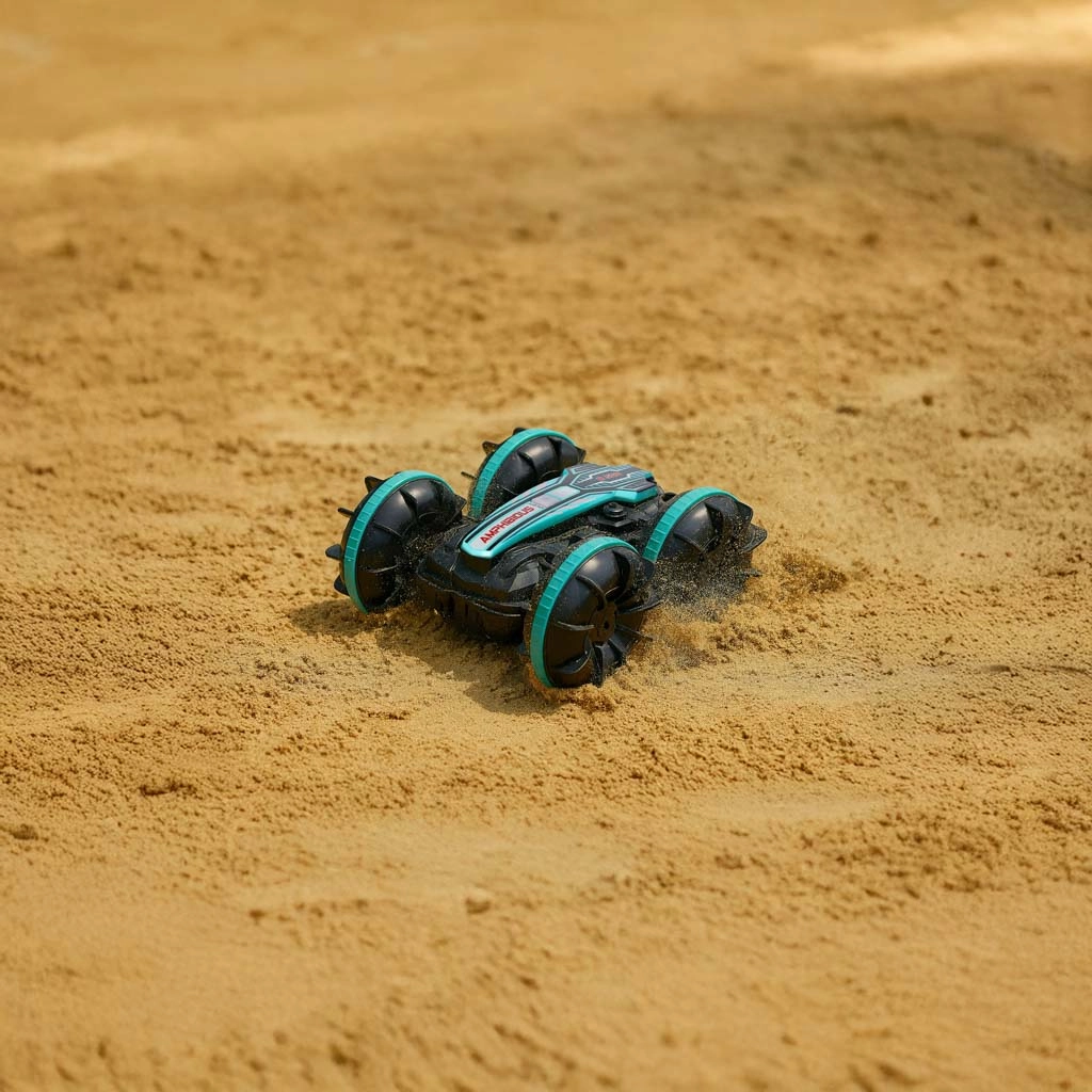 Steuern Sie die Fahrt mit einer Handbewegung! Das amphibische RC-Auto mit Gesten-Controller am Handgelenk bringt intuitive Unterhaltung drinnen und draußen. Robuste Räder mit tiefem Profil und 4x4-Antrieb sorgen für eine sanfte Fahrt auf Sand, Gras und Kies; dank der Konstruktion meistert es auch Spritzwasser und das Fahren auf der Wasseroberfläche.