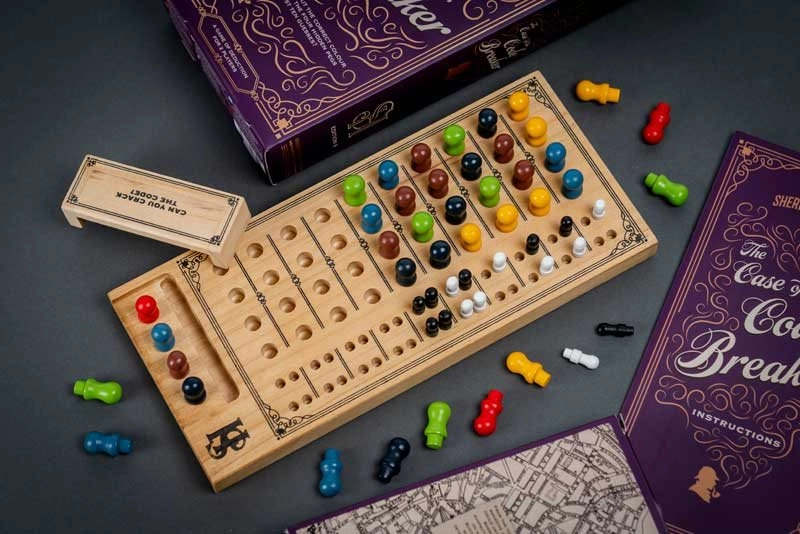 Der legendäre Mastermind-Knobelklassiker in eleganter Holzausführung bietet clevere Duelle eins gegen eins. Ein Spieler wählt heimlich eine Kombination, der andere versucht, sie innerhalb von zehn Versuchen mithilfe weißer und schwarzer Wertungsstifte zu entschlüsseln. Kombinieren, deduzieren und überlisten Sie den Gegner wie SHERLOCK HOLMES seinen Rivalen.