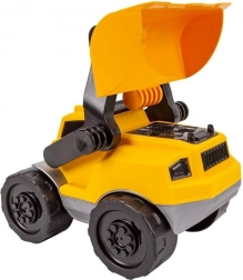 Die bewegliche Schaufel ermöglicht das Aufnehmen und Auskippen von Material und fördert kreatives, realistisches Bauspiel.