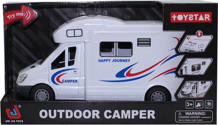 Dieser realistisch gestaltete Wohnwagen begeistert kleine Fahrer mit Details und Funktionen. Der Innenraum wird durch ein blinkendes Licht erleuchtet und auf dem Dach befindet sich ein Soundpanel mit authentischen Geräuschen von Start, Fahrt, Hupe und Schließen der Türen. Dank der öffnenden Türen und des Dachs können Kinder ihre Geschichten leicht nachspielen.