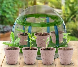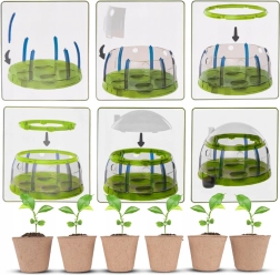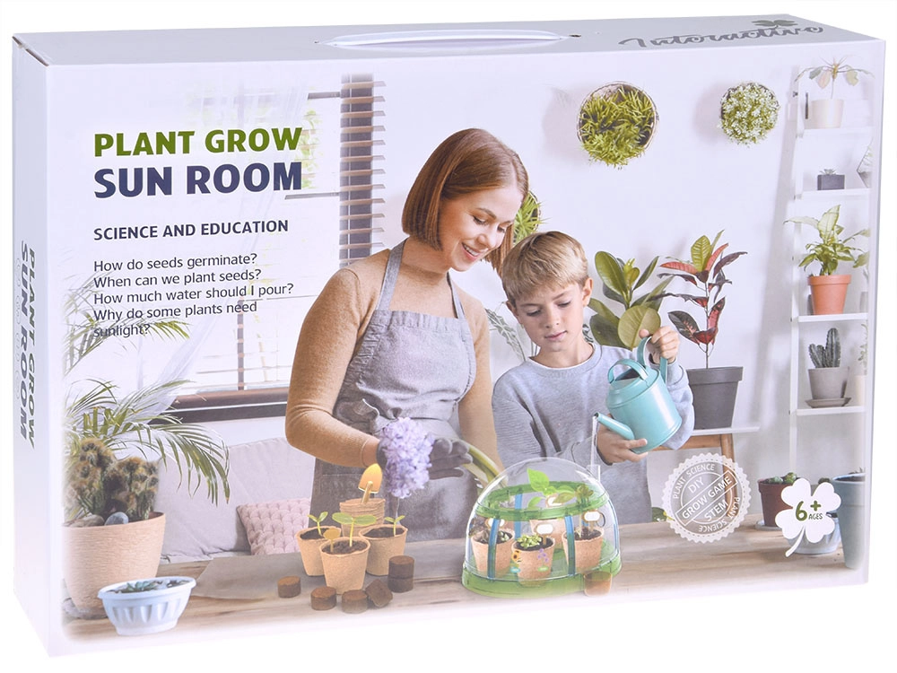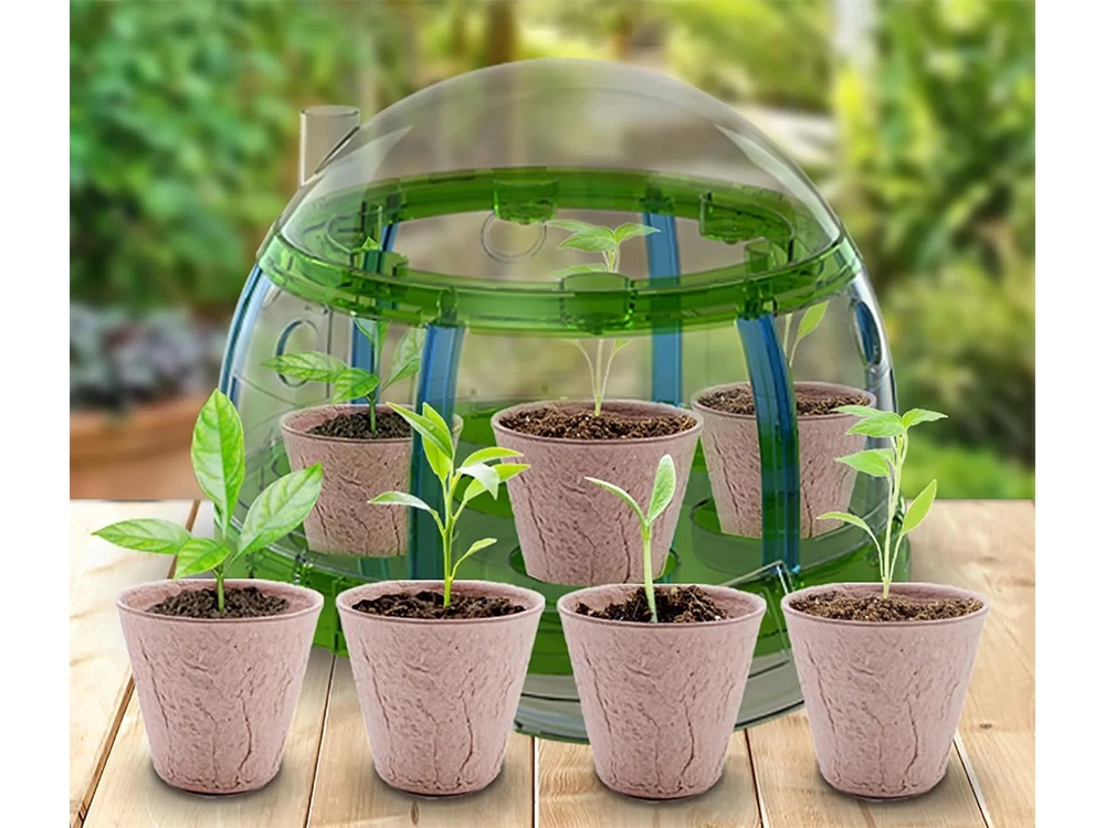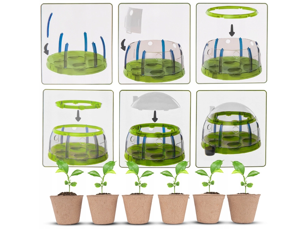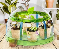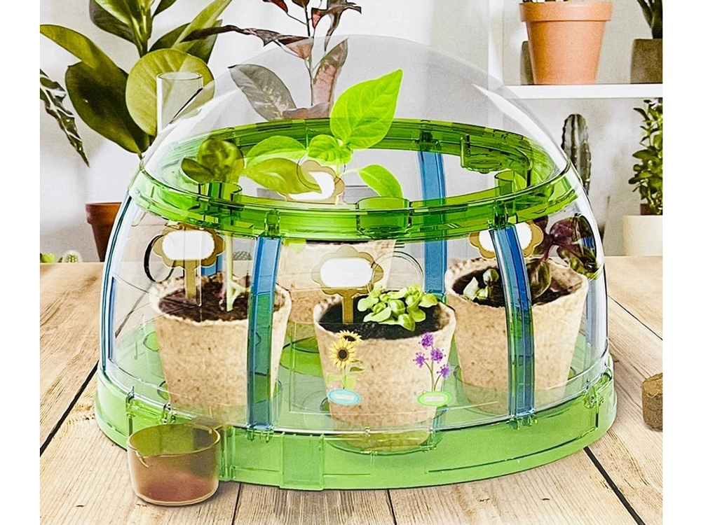 Gestaltet zu Hause einen kleinen Garten und beobachtet das Wachstum vom Samen bis zur ausgewachsenen Pflanze. Das dekorative Mini-Gewächshaus mit aufklappbarem Dach und einzelnen Türchen zu jedem Töpfchen bietet ideale Bedingungen zum Keimen. Die biologisch abbaubaren Töpfchen können direkt in die Erde umgesetzt werden – umweltschonend und ohne Schmutz.