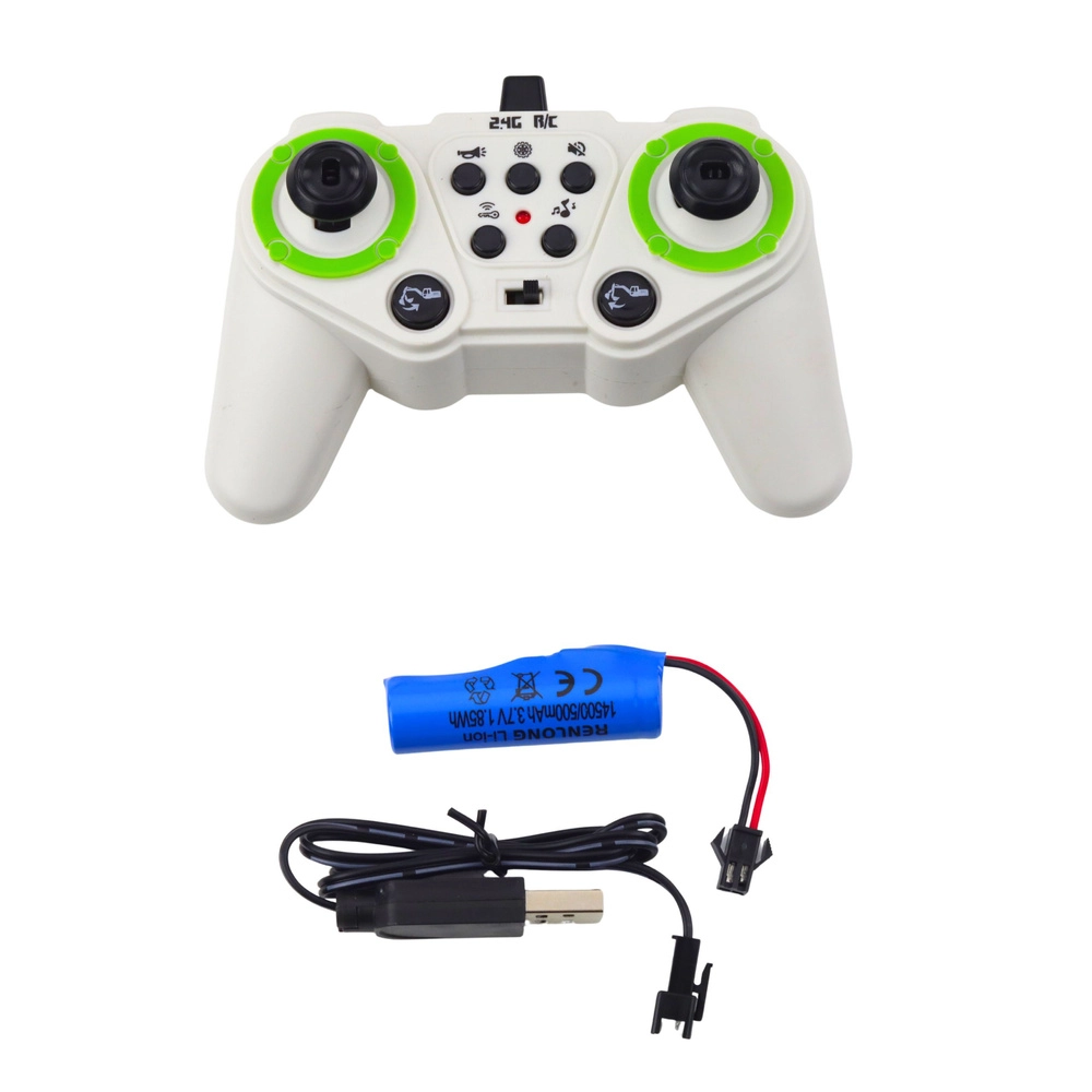 Das Modell wird von einem 3,7 V Akku betrieben (im Lieferumfang enthalten), die Fernsteuerung benötigt 3× AA 1,5 V Batterien (nicht enthalten). Die robuste Kunststoffkonstruktion mit Metallelementen sorgt für längere Lebensdauer und bessere Fahrstabilität.