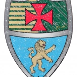 Auf ins Ritterabenteuer mit dem Schild Souza! Ronald. Dieser hochwertige Kinderschild aus EVA-Schaum ist sicher, leicht und zugleich stabil genug für fantasievolle Spiele. Die Vorderseite ziert ein blaues Wappen mit Löwen, ein Ritterkreuz und ein dekorativer Rand, die dem Schild eine authentische Optik verleihen.
