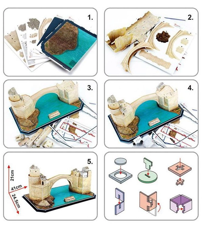 Entdecken Sie den Zauber von Bosnien und Herzegowina mit diesem 3D-Puzzle der ikonischen Bogenbrücke in Mostar. Das Modell besteht aus 3 mm starkem Schaumstoff, der mit laminiertem, bedrucktem Papier beschichtet ist, was Langlebigkeit, realistische Optik und passgenaue Verbindung gewährleistet. Die Teile sind vorgestanzt und lassen sich einfach herausdrücken – ohne Kleber und Schere.