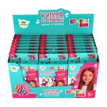 Dieses Kreativset ermöglicht es Kindern, ihre eigenen Haarreifen ganz nach Stimmung zu entwerfen und zu verzieren. Jede Packung ist eine kleine Überraschung – ein Mix aus Farben, Formen und Accessoires bietet stets neue Ideen und originelle Kombinationen. Dank der selbstklebenden Punkte und des beiliegenden Klebers ist der Ablauf einfach und sauber, sodass auch jüngere Kinder mit Freude losbasteln können.
