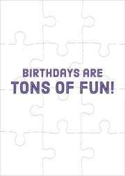 Dieses einfallsreiche Glückwunsch-Puzzle ist ideal, um eine Geburtstagsbotschaft originell zu übermitteln. Schreiben Sie Ihren Wunsch auf die Rückseite des Puzzles, legen Sie die Teile in den Umschlag, und beim Puzzeln erwartet das Geburtstagskind eine schöne Überraschung – nach dem Fertigstellen liest es Ihre persönliche Nachricht.