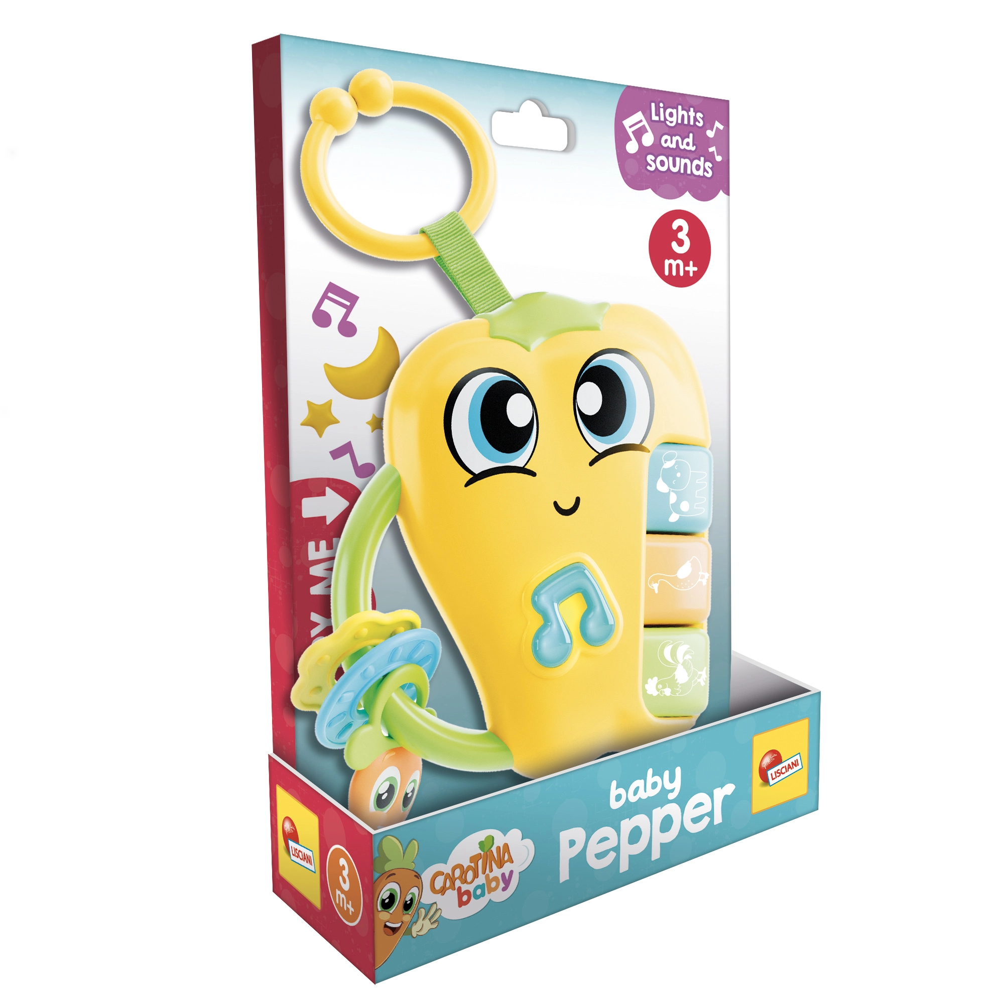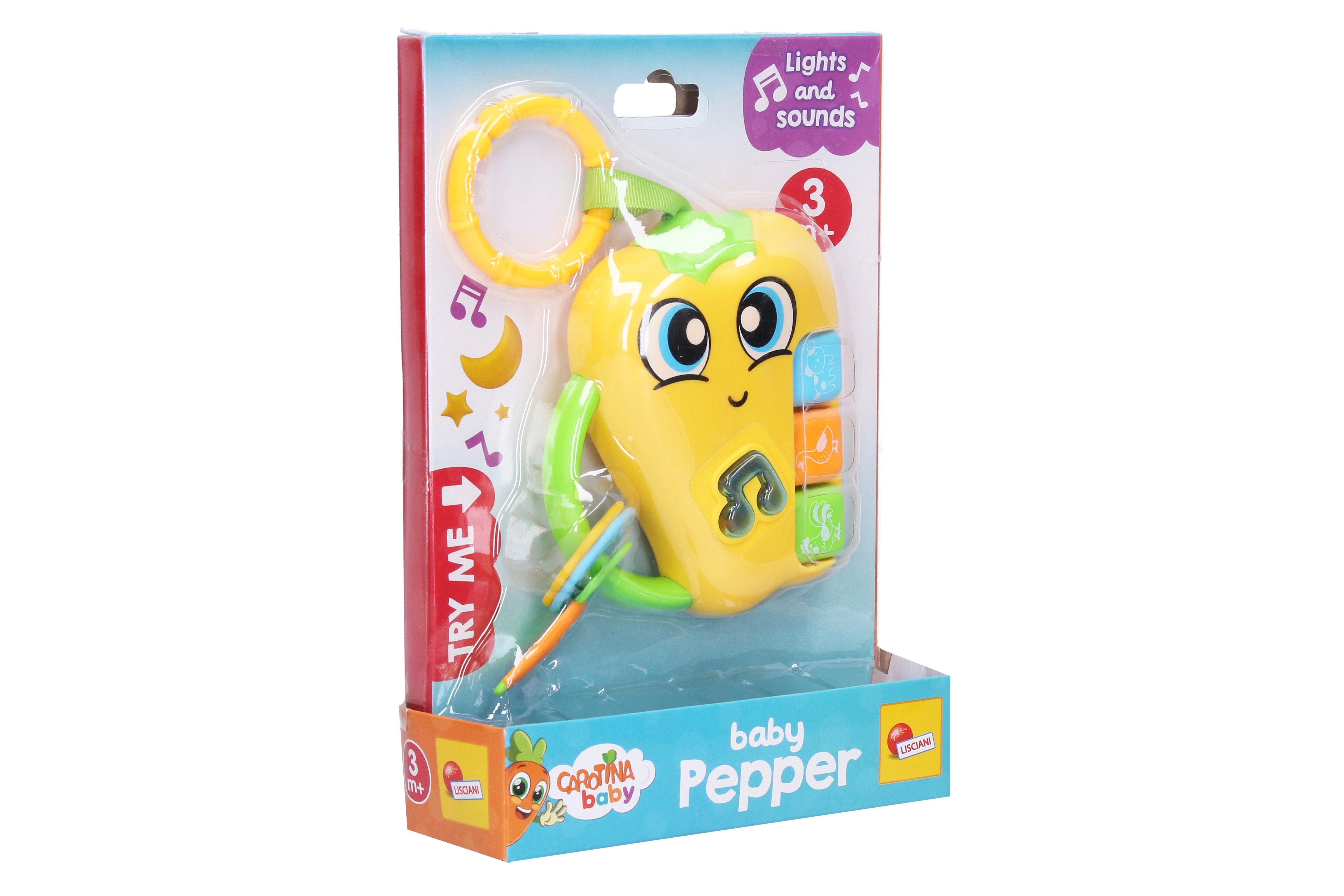 Das unterhaltsame Spielzeug für die Kleinsten, die Carotina Paprika mit Effekten, bietet Licht- und Geräuschreize, die die sensorische Entwicklung fördern. Kinder begeistert sie mit 3 Tier-Tasten mit Melodien und Geräuschen, einer Notentaste mit 2 Melodien und Blinklicht sowie einem praktischen Aufhängring. Batterien sind im Lieferumfang enthalten, sodass der Spaß sofort beginnen kann.