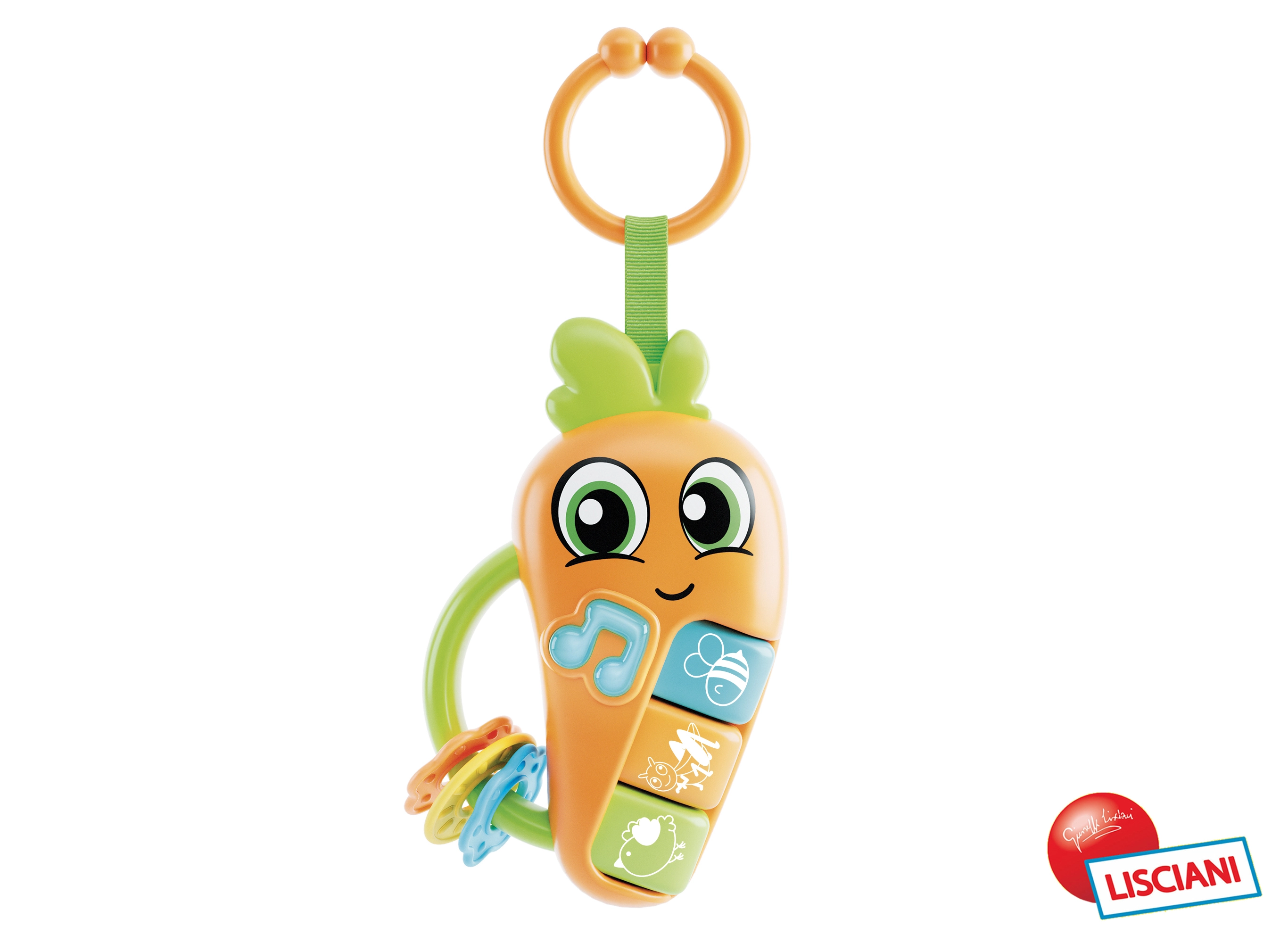 Das entzückende interaktive Spielzeug in Karottenform bringt Kindern viel Freude und fördert ihre Sinne. Einfach eine der drei Tier-Tasten drücken, und das Kind hört abwechselnde Melodien oder authentische Tiergeräusche. Die Noten-Taste startet zwei unterschiedliche Melodien und ein effektvolles Blinken, das die Aufmerksamkeit auf sich zieht.