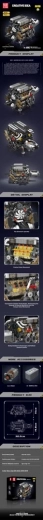 Bauen Sie eine eindrucksvolle Replik eines W16-Motors, inspiriert von legendären Supersportwagen, und erleben Sie, wie ein echter Antriebsstrang funktioniert. Der Bausatz aus robustem Kunststoff bietet eine detailreiche Ausführung und funktionierende Mechanik – vom Ventiltrieb über bewegliche Kolben bis hin zu doppelten Turboladern und Abgasanlage.
