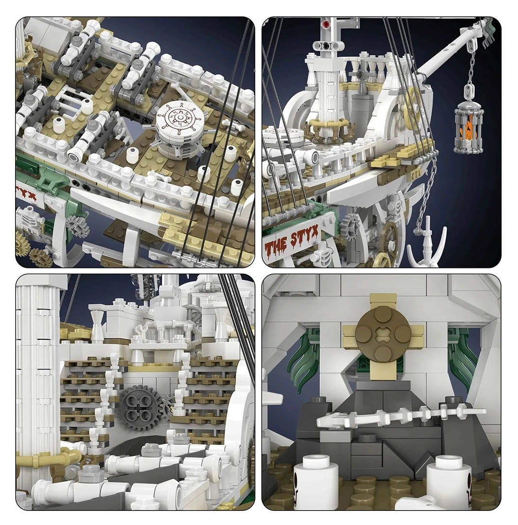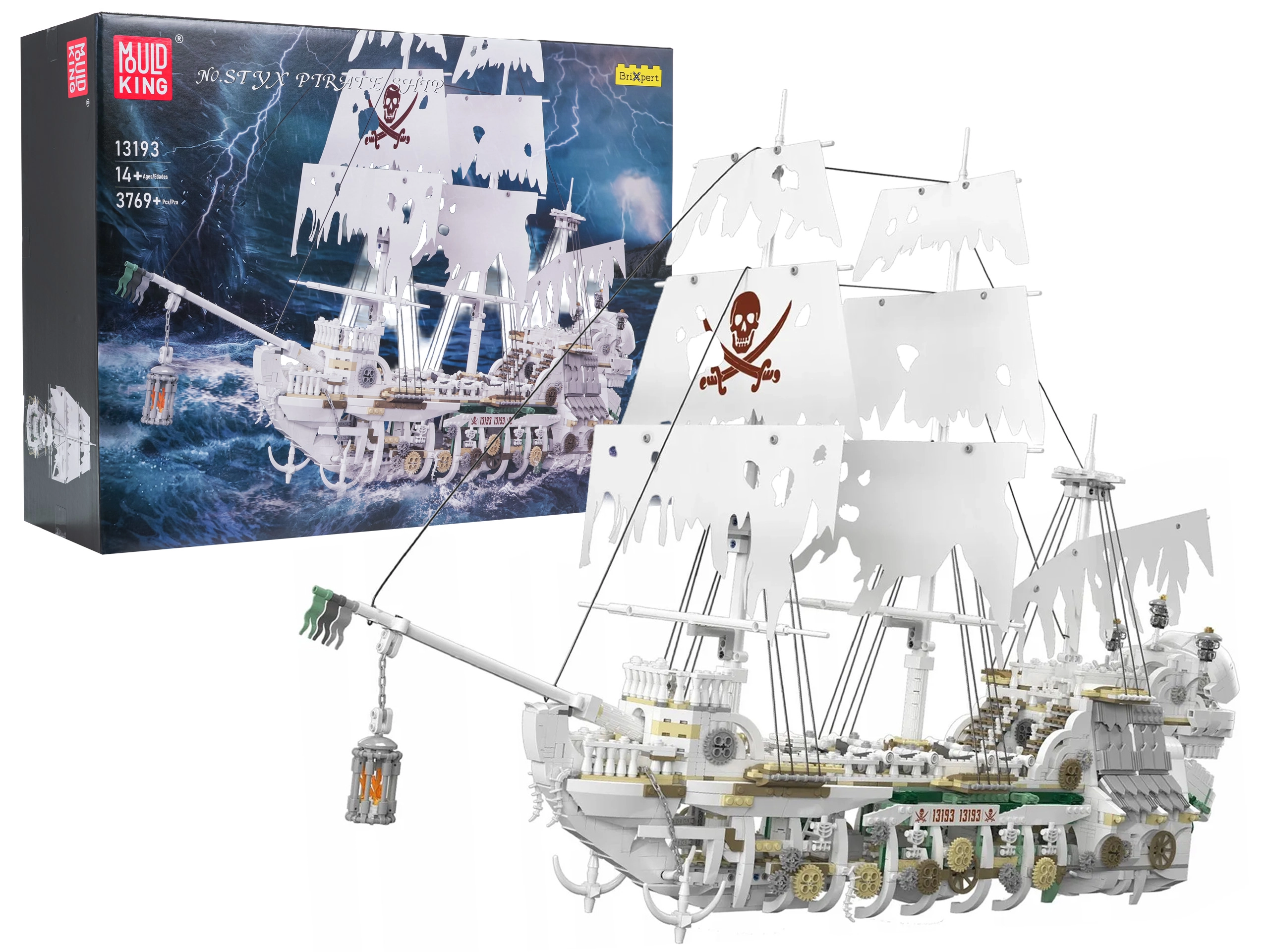 Erschaffen Sie Ihr eigenes legendäres Schiff – das Piratenschiff Geist, das mit ausgefeilten Elementen und eindrucksvoller Größe begeistert. Das Modell besticht durch einen dunklen, majestätischen Look und zahlreiche realistische Details, die die Atmosphäre der Piratenwelt unterstreichen.