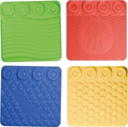 Jede Matte hat ein einzigartiges Relief (Wellen, Punkte, Formen und Spuren), das sanft Füße und Handflächen massiert und die sensorische Wahrnehmung sowie das Gleichgewicht stärkt.