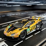 Authentische Reproduktion des Lamborghini Huracán GT3 mit realistischen Decals, Aerodynamik und Heckflügel für einen attraktiven Auftritt auf der Bahn.
