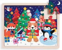 Das Kinder-Holzpuzzle von MUDPUppy bringt eine zauberhafte Festtagsstimmung mit fröhlichen Tieren, Geschenken und geschmückten Bäumchen. Große, angenehm „pummelige“ Teile liegen gut in kleinen Händen und werden direkt in das robuste Holztablett gepuzzelt, sodass kein Teil verloren geht.