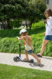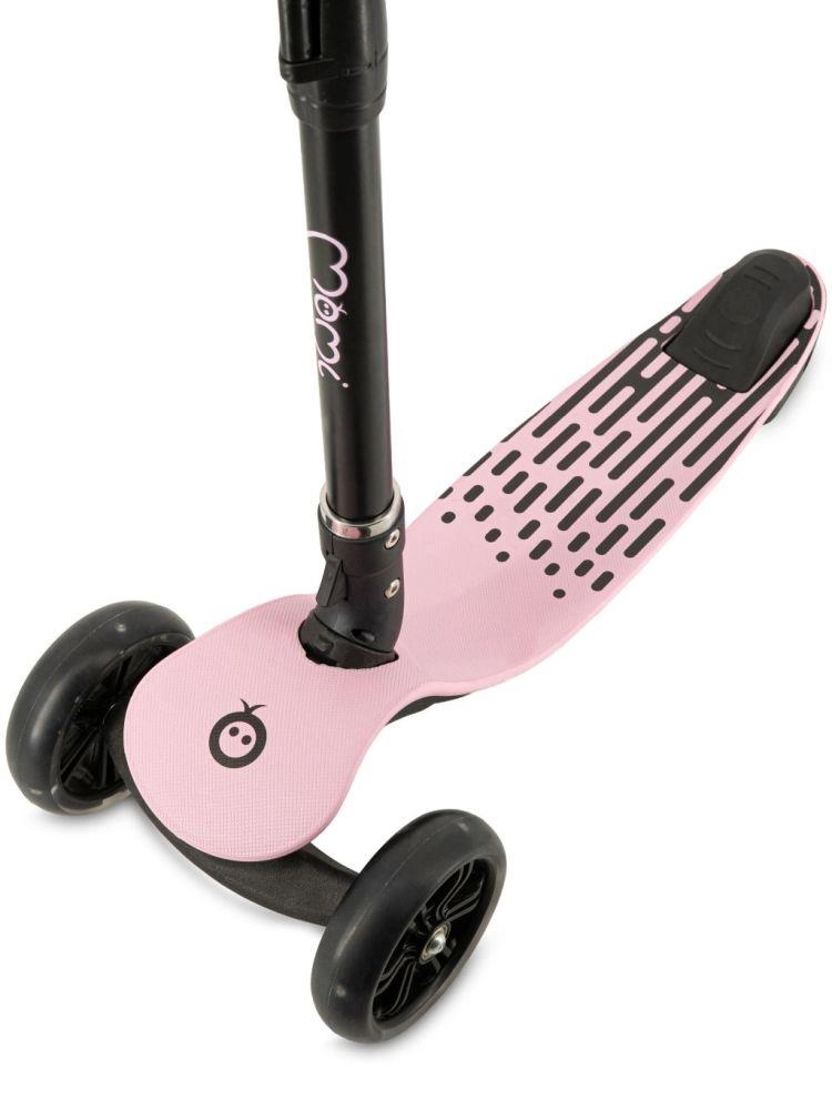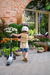 MoMi San ist der ideale erste Roller, um Gleichgewicht und Fahrsicherheit zu entwickeln. Die dreirädrige Konstruktion mit zwei Vorder- und einem Hinterrad bietet hervorragende Stabilität, während die breite rutschfeste Trittfläche und die komfortablen Griffe zu sicherem Handling beitragen. Die LED-Räder leuchten während der Fahrt und sorgen für Spaß und bessere Sichtbarkeit.
