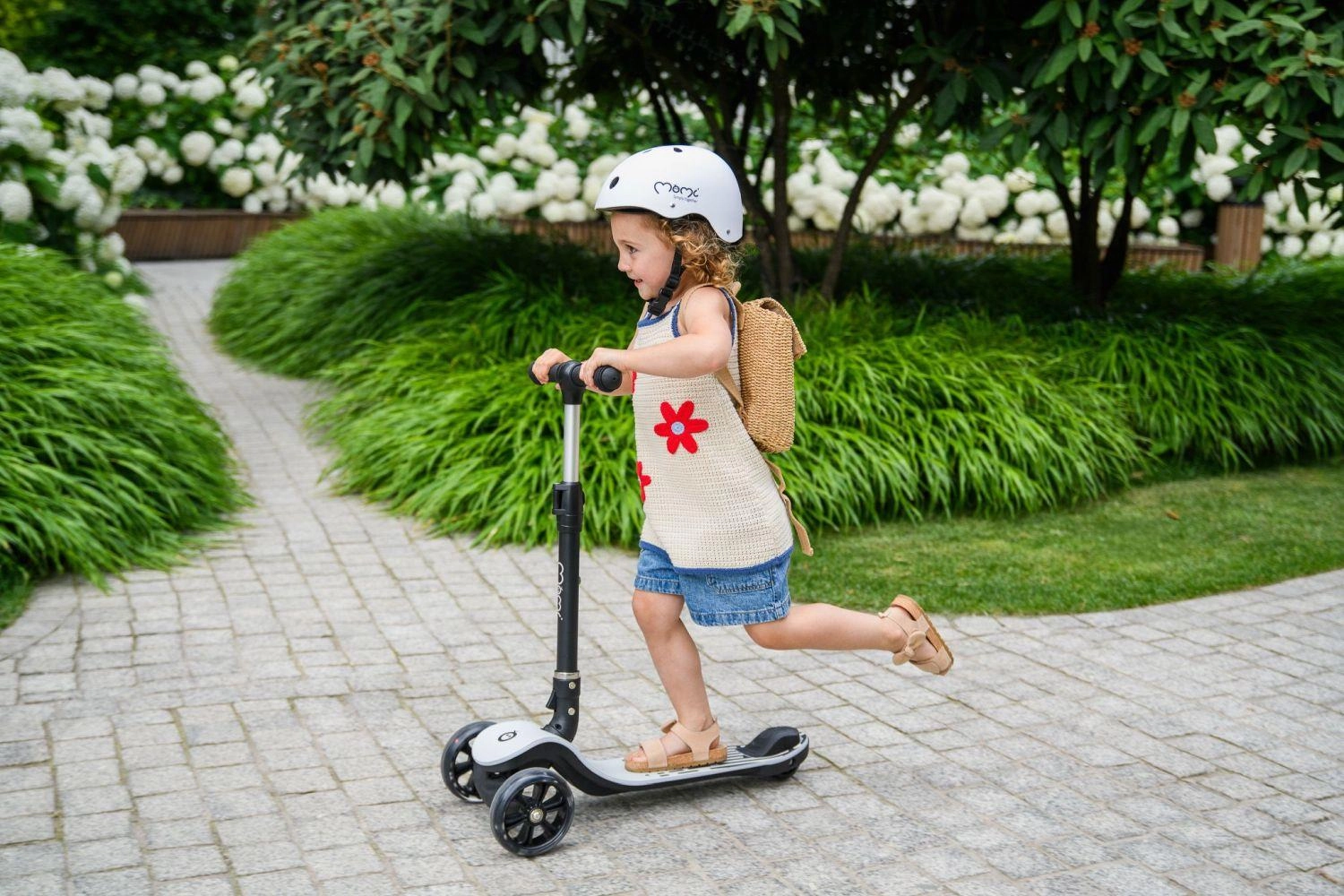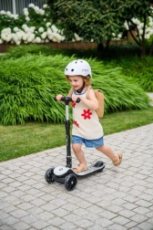 Der MoMi San ist der ideale erste Roller für kleine Fahrer ab ca. 3 Jahren. Drei Räder sorgen für hervorragende Stabilität, das geringe Gewicht von 2,7 kg erleichtert die Handhabung und die Fußbremse bietet Sicherheit beim Anhalten. Dank LED-Rädern ist die Fahrt nicht nur sicher, sondern auch spaßig.
