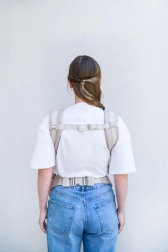 Das breite, verstellbare Panel hält den Rücken in seiner natürlichen Krümmung und unterstützt die „M“-Position der Beinchen für eine gesunde Hüftentwicklung von klein auf.