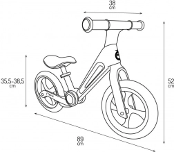 Dank des weiten Sattelverstellbereichs (werkzeuglos) wächst das Laufrad mit Ihrem Kind mit. Rutschfeste Griffe und das Fehlen einer Lenkbegrenzung tragen zu einer sichereren Handhabung bei – ideal für die ersten Balancefahrten.