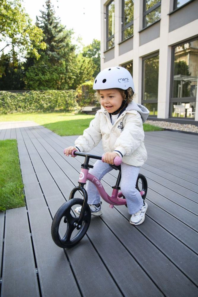 Das Laufrad MoMi ISOKA ist die ideale Vorbereitung auf das erste Fahrrad mit Pedalen. Dank niedrigem Gewicht und Stahlrahmen ist es robust und zugleich leicht zu handhaben. LED-Leuchten in den Rädern funktionieren per Dynamo – sie leuchten während der Fahrt und benötigen keine Batterien.