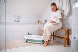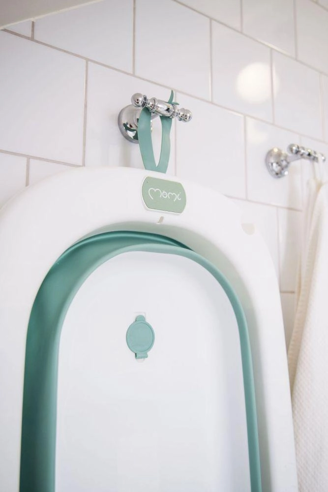 Die MoMi NATA Badewanne bietet eine smarte Lösung für kleine Badezimmer und auf Reisen. Die Faltkonstruktion ermöglicht es, die Wanne in kürzester Zeit auf eine Höhe von etwa 10 cm zusammenzulegen und an einem Haken oder hinter einem Schrank zu verstauen. Die leichte, aber robuste Materialkombination aus PP und TPE ist angenehm zu berühren, leicht zu reinigen und widerstandsfähig für den täglichen Gebrauch.