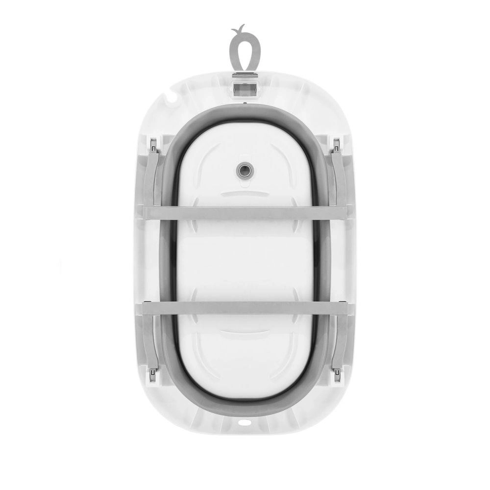Die Wanne lässt sich in wenigen Sekunden auf eine flache Form mit einer Höhe von etwa 10 cm zusammenklappen. Ideal für kleine Badezimmer und unterwegs – einfach an den Haken hängen und schon ist aufgeräumt.