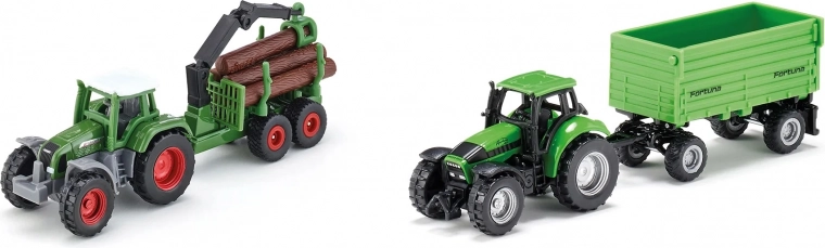Dieses SIKU-Geschenkset enthält zwei grüne Traktoren mit unterschiedlichen Anhängern – zum Auskippen von Ladung sowie zum Transport von Holzstämmen mit Ladearm. Die Modelle bilden echte Maschinen originalgetreu nach, inklusive detaillierter Kabinen, Räder und Kupplungen. Dank der beweglichen Elemente erleben Kinder authentisches Handling von Ladung und entwickeln Fantasie sowie Feinmotorik.
