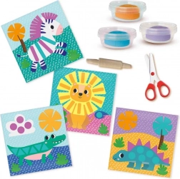 Im Set enthalten sind 3 Becher Knetmasse (je 40 g) in attraktiven Farben (Orange, Lila, Blau oder Grün), Sicherheitsschere, Roller und 4 große Vorlagenkarten. Perfekt für kreatives Gestalten zu Hause und in der Kita – fördert Geduld, Kreativität und Selbstvertrauen im Umgang mit Material.