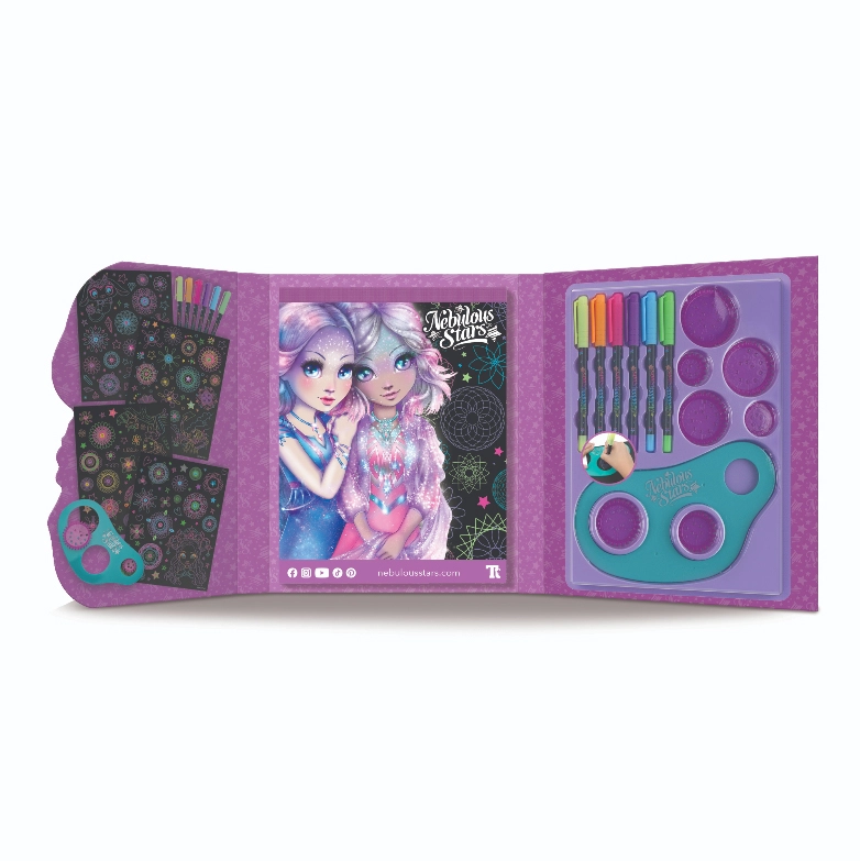 Treten Sie in die Sternenwelt von NEBULOUS STARS ein und lassen Sie Ihrer Fantasie freien Lauf mit dem originellen Set zum Malen von Spiralen. Die schwarzen Seiten lassen Neonfarben brillant leuchten, und die Schablone mit 7 Zahnrädern ermöglicht das einfache Gestalten perfekt regelmäßiger oder spielerisch kombinierter Spiralmuster.