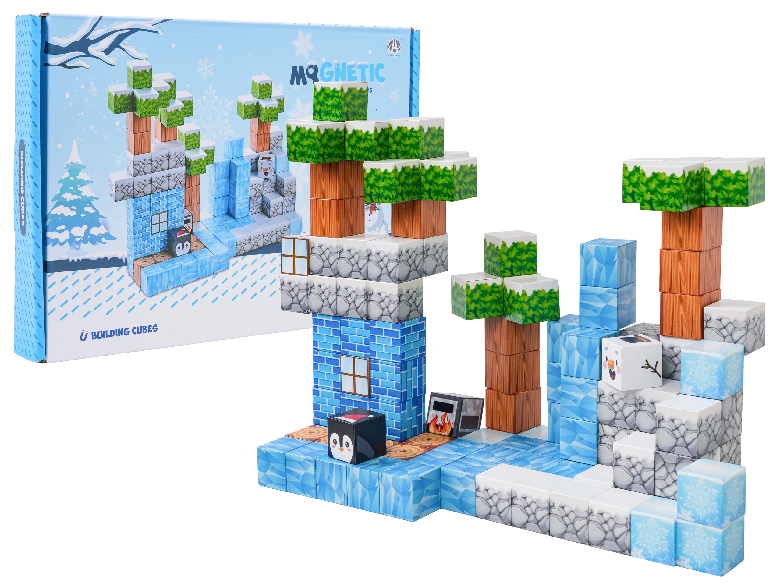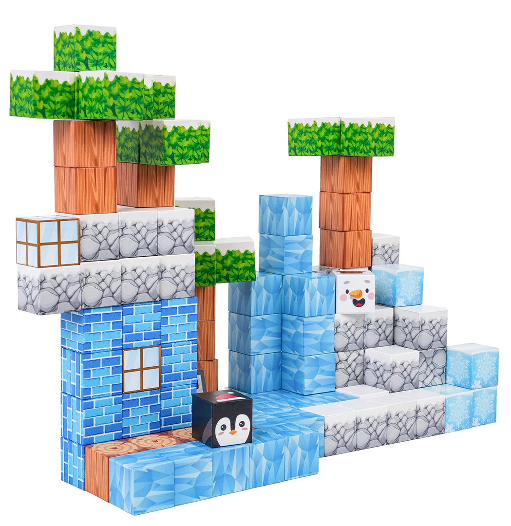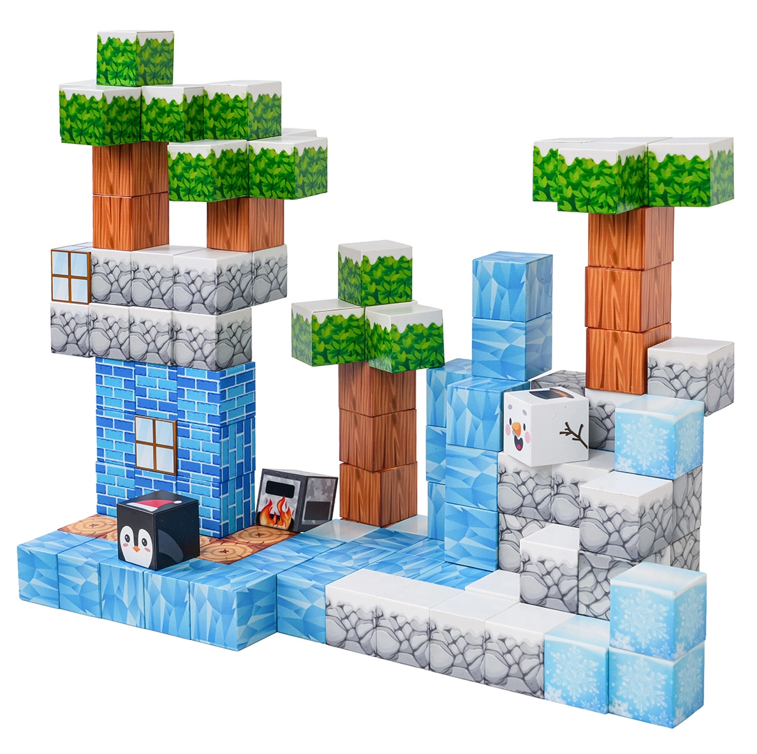 Diese umfangreiche Bausteinbox bietet Kindern endlose Baumöglichkeiten – von Winterszenen bis zu originellen Landschaften und Bauwerken. Die Bausteine mit bedruckten Texturen (Eis, Holz, Stein, Ziegel, Grün) verbinden sich dank Neodym-Magneten sicher und fest, sodass die Modelle auch bei längerer Spielzeit ihre Form behalten.