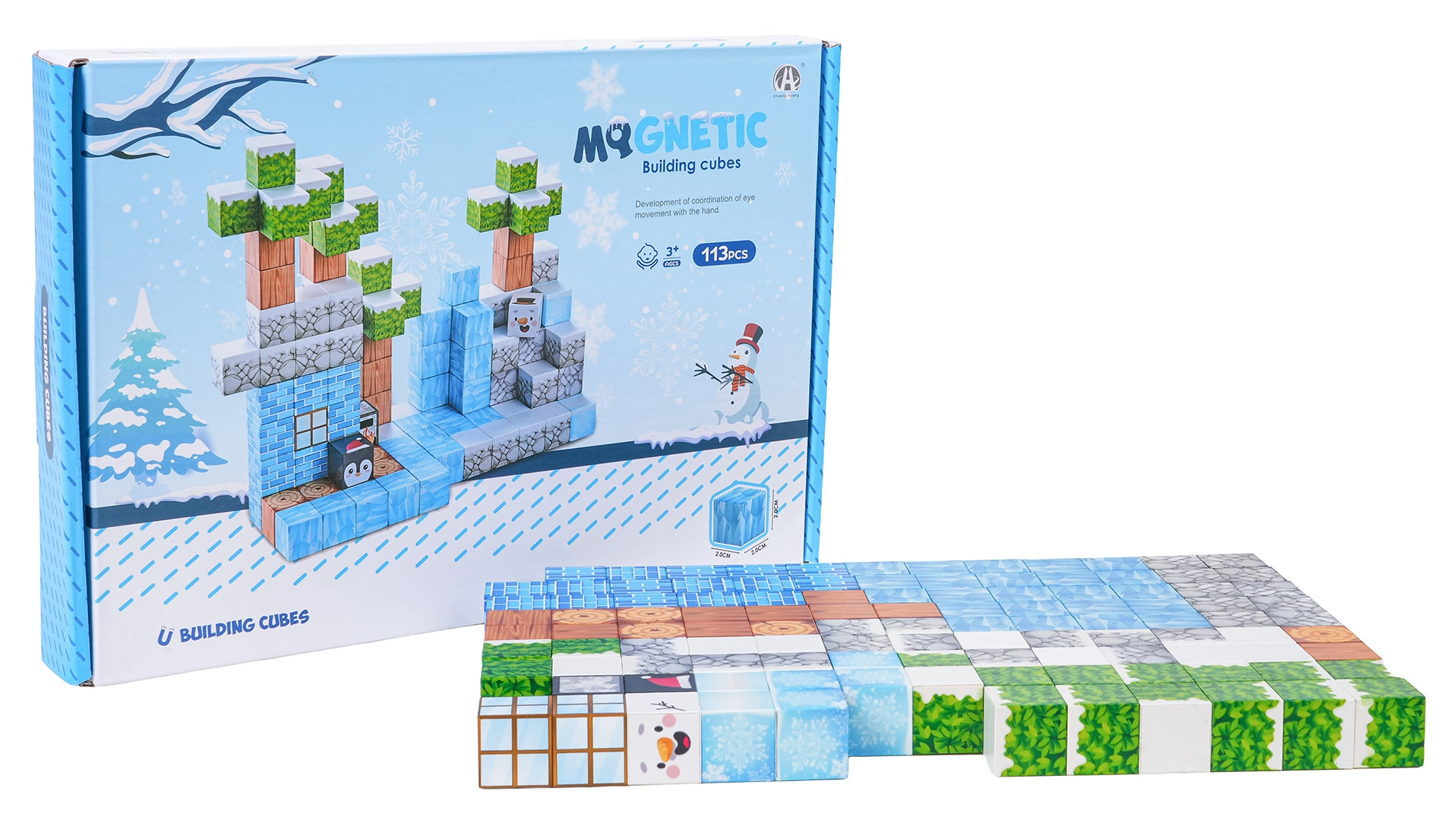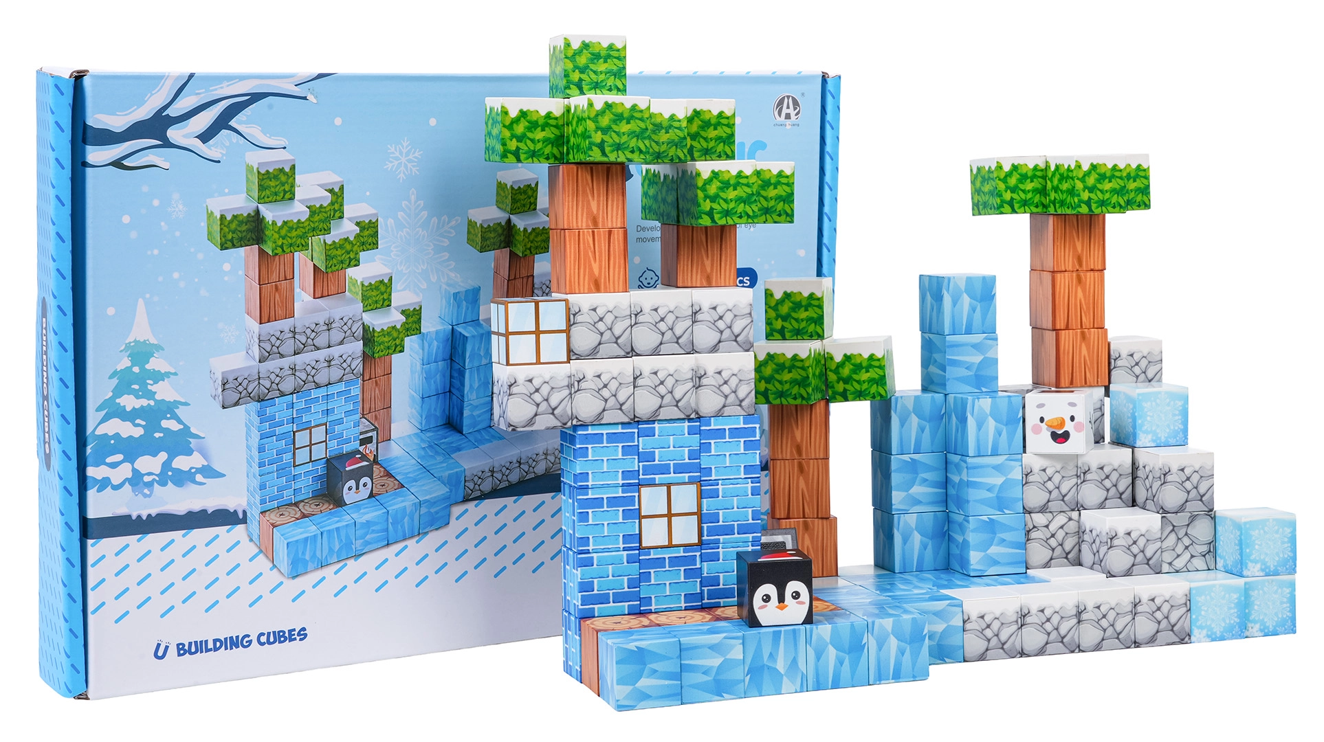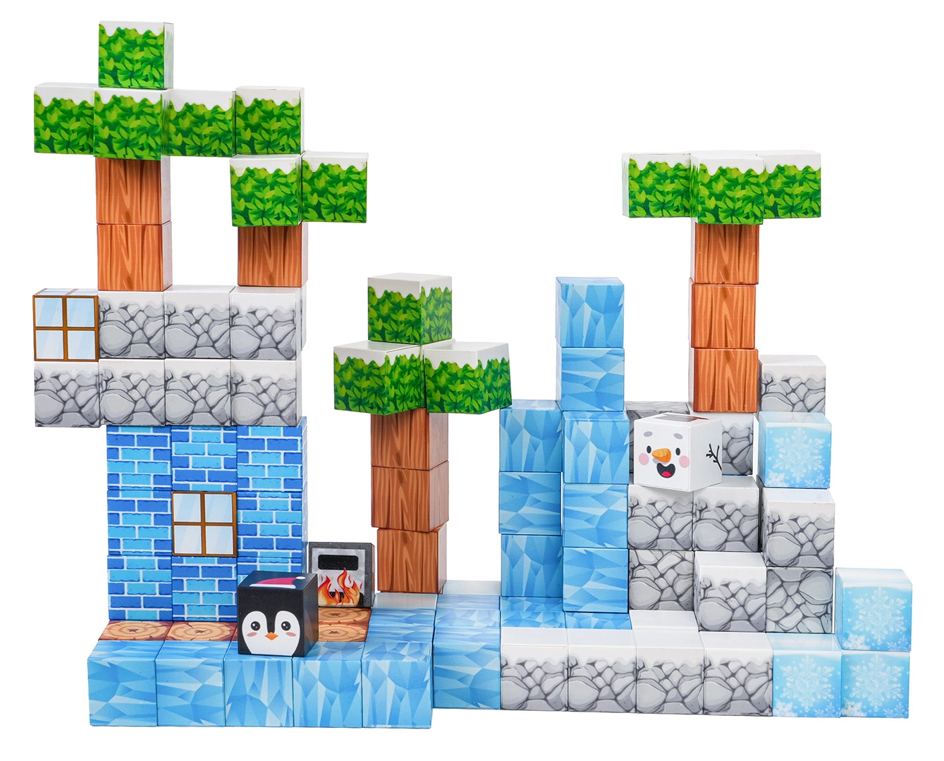 Diese umfangreiche Bausteinbox bietet Kindern endlose Baumöglichkeiten – von Winterszenen bis zu originellen Landschaften und Bauwerken. Die Bausteine mit bedruckten Texturen (Eis, Holz, Stein, Ziegel, Grün) verbinden sich dank Neodym-Magneten sicher und fest, sodass die Modelle auch bei längerer Spielzeit ihre Form behalten.