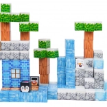 Strukturierte Drucke von Eis, Holz, Stein und kleinen Ziegeln sowie niedliche Figuren (Pinguin, Schneemann) ziehen Kinder in das Gestalten eigener Geschichten und Szenerien hinein.