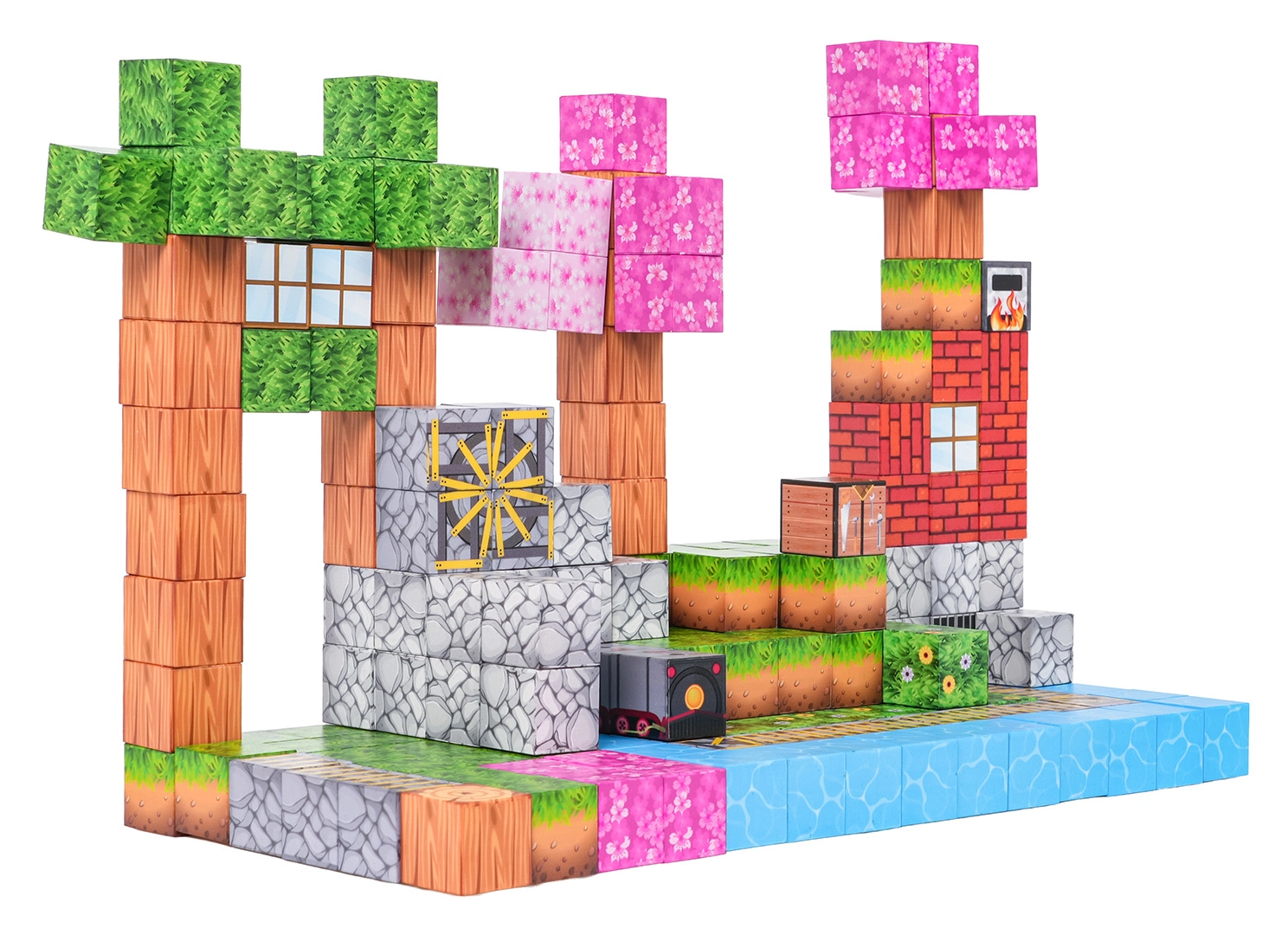 Integrierte Neodym-Magnete gewährleisten eine feste Verbindung der Teile, sodass auch höhere und komplexere Konstruktionen beim Spielen stabil und sicher bleiben.