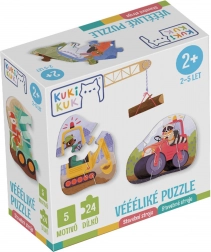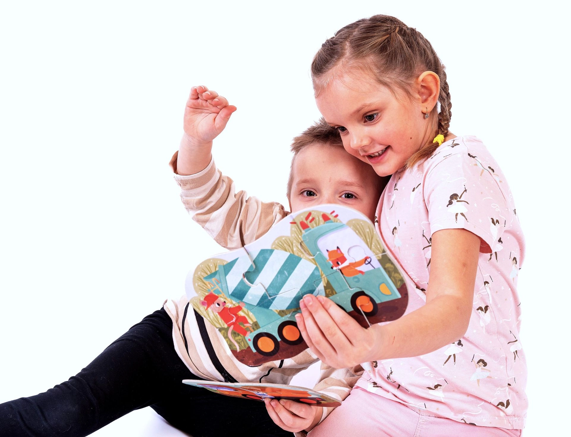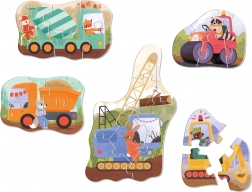 Entdecken Sie fröhliches Puzzeln mit Baumaschinen – von einfachen Zwei- bis hin zu größeren Siebenteile-Puzzles im Format 31 × 20 cm. Dieses Set ist ideal für kleine Fans von Baggern, Mischern und Kränen. Die Teile sind robust, 2 mm dick und leicht zu greifen, sodass Kindern die Handhabung leichter fällt und sie schneller Erfolgserlebnisse haben.