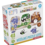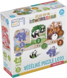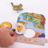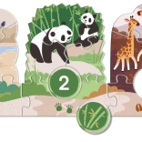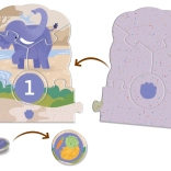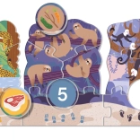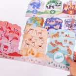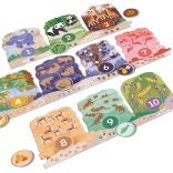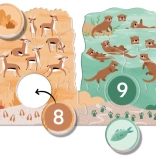 Dieses originelle Lernspiel bringt Kindern ab 2 Jahren Tiere, ihre Spuren und ihr Futter nahe und trainiert zugleich das erste Zählen von 1 bis 10. Die langen Puzzles mit Tiergehegen ergänzen Kinder um passende Marker nach Anzahl, Spur oder Futter und üben so Aufmerksamkeit, Sortieren und Assoziationen.