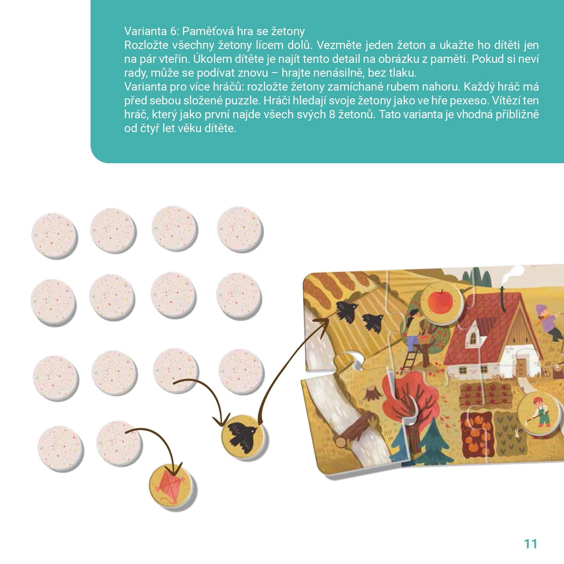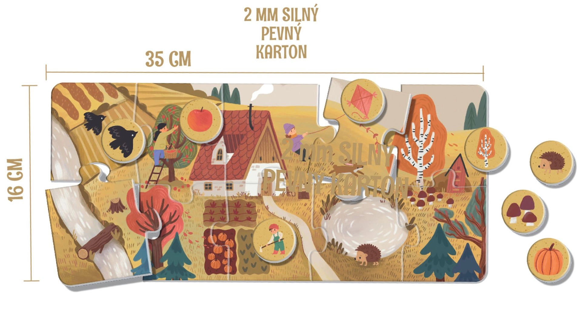 Das Spiel ist für kleine Hände gestaltet: extra große Teile aus 2 mm FSC-Karton sind robust, leicht zu greifen und vollständig plastikfrei. Lernen geschieht ganz natürlich – Kinder trainieren die Aufmerksamkeit, erweitern ihren Wortschatz und sprechen über Veränderungen in der Natur im Jahresverlauf.