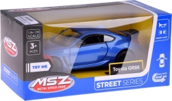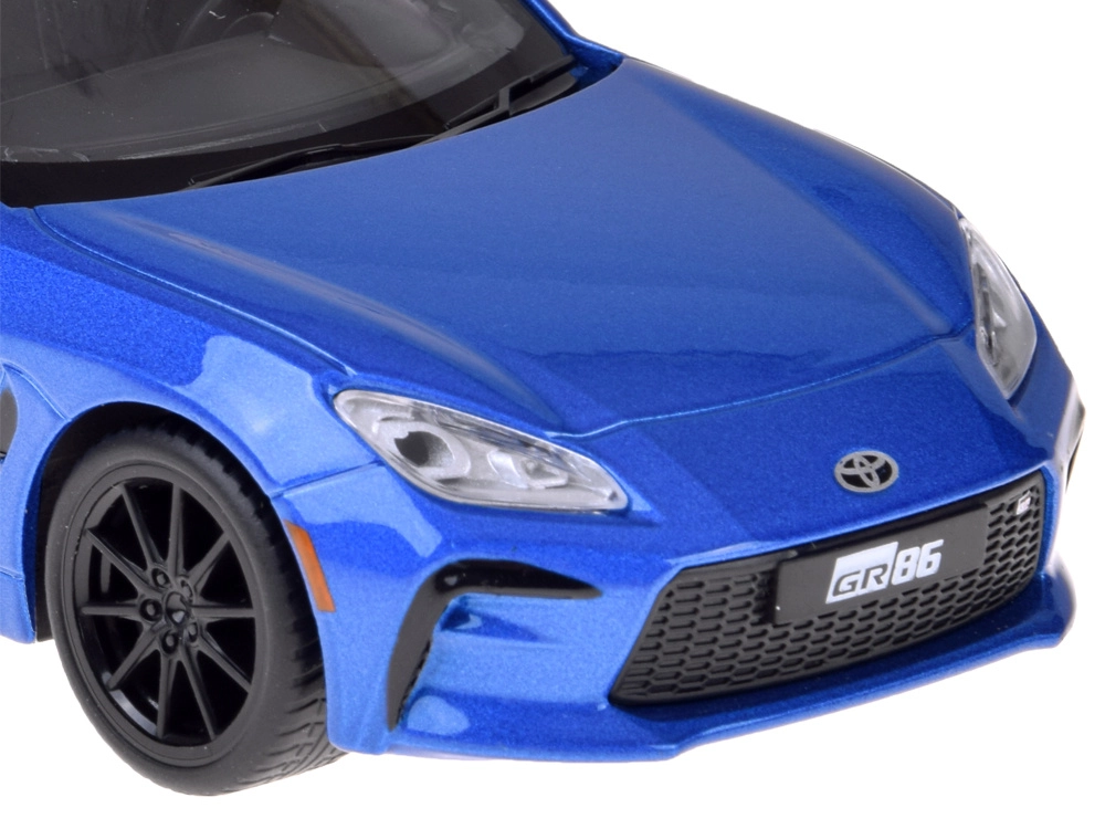 Das detailreich ausgearbeitete Modell TOYOTA GR86 in attraktiver blau-metallischer Lackierung begeistert mit hochwertiger Verarbeitung und realistischen Proportionen. Die Metallkarosserie mit Kunststoffchassis und Gummireifen sorgt für eine ruhige, leise Bewegung, während zu öffnende Türen die Lichter sowie Motor- und Hupgeräusche aktivieren.