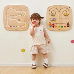 Diese wandmontierte magnetische Tafel von VIGA ist ideal für Kinderzimmer, Kitas und Spielräume. Zwei verschiedene Strecken – eine gerade und eine geschwungene – zeigen Kindern anschaulich, wie die Schwerkraft die Geschwindigkeit und Flugbahn der Bewegung beeinflusst. Der beigefügte Magnetstift an der Schnur führt die bunten Scheiben sicher unter der transparenten Abdeckung.